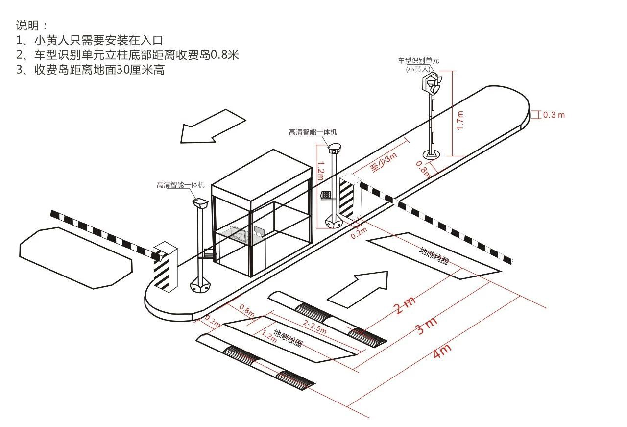 4)車道車輛全景監(jiān)控功能:車型識別設(shè)備有前側(cè)后三組攝像頭組成,能提供車輛通過車道全景全息過程。